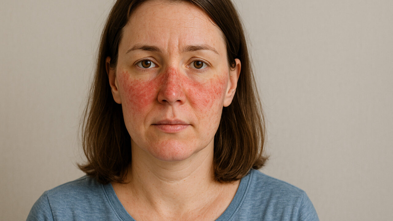 - Pot apărea erupții cutanate în diferite zone ale corpului, adesea în formă de fluture pe față.